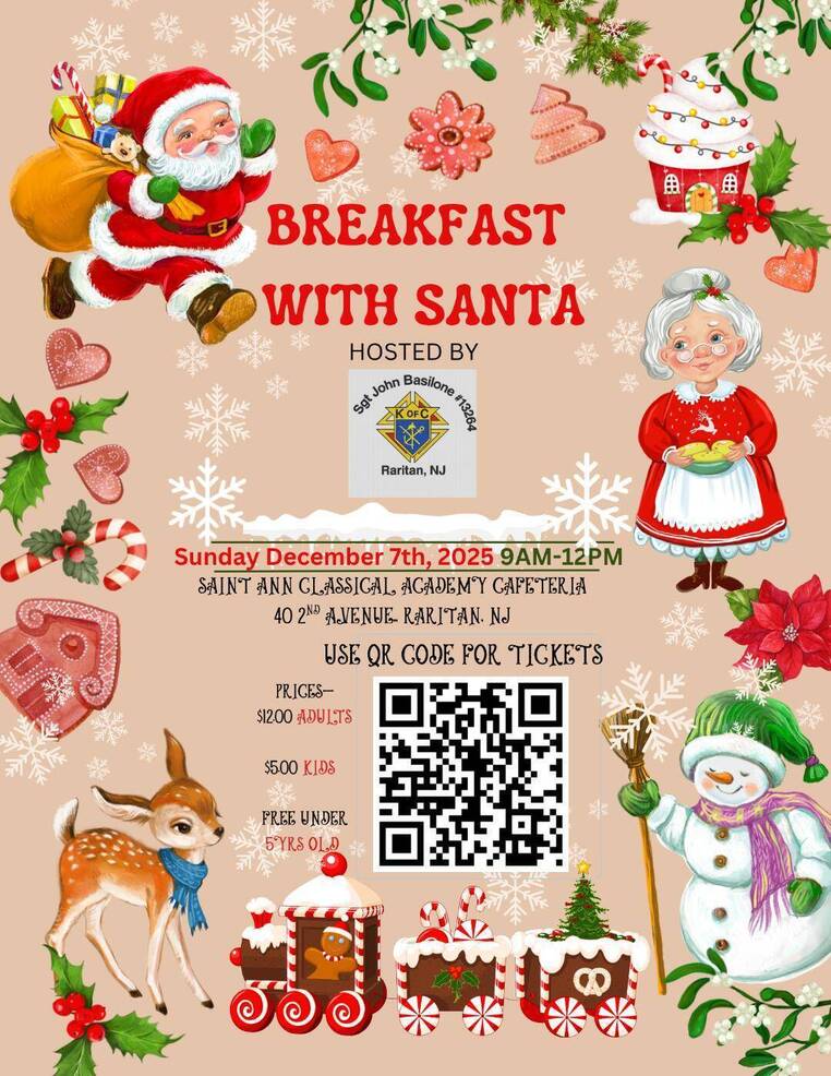 Tickets are priced at $12 for adults and $5 for children ages 5–12, making the event both accessible and affordable for families looking to enjoy a festive morning together. The event takes place at St. Ann’s Parish, 45 Anderson Street, Raritan, NJ 08869, a central location that welcomes families from throughout the area.