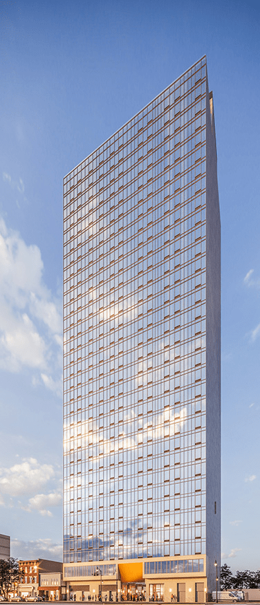 A defining feature of Homestead Gateway is the dedication of one-third of the site to publicly accessible open space. This expansion of the Homestead Place Pedestrian Plaza will help create a more walkable district and further strengthen the area’s growing identity as a transit-accessible, pedestrian-friendly hub. The streetscape directly in front of the tower will form the gateway to this expanded plaza, creating a clear connection between the new building and the evolving neighborhood around it.