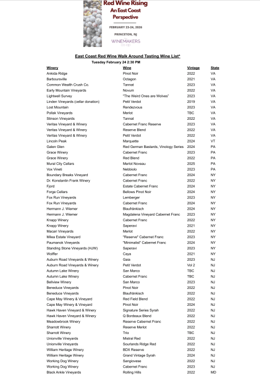 At the center of the two-day event is a self-guided walk-around tasting experience designed to showcase the breadth and complexity of East Coast red wines. The newly released wine list reveals an impressive lineup of more than 50 wines, carefully categorized by variety, region, and stylistic approach.