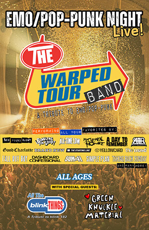 This isn’t a casual cover night. The Warped Tour Band has built its reputation on recreating the intensity, emotion, and chaotic joy of the original festival circuit that inspired them. Their setlist is a love letter to the scene’s greatest hits, running through towering choruses and raw confessionals from genre-defining artists. Expect to hear the rallying cries of Taking Back Sunday, the theatrical darkness of My Chemical Romance, the reckless hooks of Blink-182, the anthemic heartbreak of Fall Out Boy, and the glossy energy of Paramore. Add in fan favorites from Sum 41, Yellowcard, Dashboard Confessional, Simple Plan, New Found Glory, The Used, Senses Fail, Brand New, All Time Low, A Day To Remember, and All-American Rejects, and you’ve got a night built entirely of nostalgia detonators.
