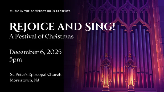 The festive season begins with the Somerset Hills Chorus, led by the accomplished Stephen Sands, performing on Saturday, December 6 at 5:00 p.m. at St. Peter’s Episcopal Church in Morristown. The ensemble’s program features a captivating selection of Christmas music, anchored by Francis Poulenc’s Gloria, performed with organ, brass, and soprano soloist Kristin Sands. Known for its dynamic range and expressive musicality, the chorus will also offer audience favorites including sing-along carols and a show-stopping finale arranged by Ryan Brandau. Founded in 2010, the Somerset Hills Chorus is dedicated to helping singers of all experience levels improve their skills while performing extraordinary repertoire in exceptional venues across the region. Their holiday concerts have become a cherished tradition, blending musical excellence with accessibility for audiences of all ages.