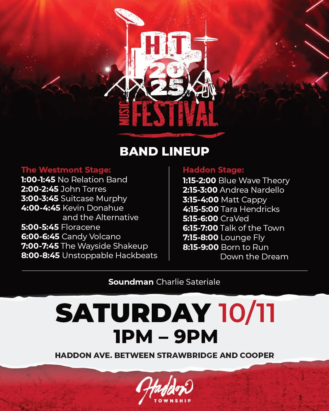 Haddon Avenue came alive this Saturday, October 11, 2025, as the 10th Annual Haddon Township Music Festival brought thousands of music lovers, families, and foodies together for a full day of rhythm, local flavor, and family fun. Stretching from Strawbridge Avenue to Cooper Street, this free community celebration once again delivered on its reputation as one of South Jersey’s most anticipated events of the fall season.
