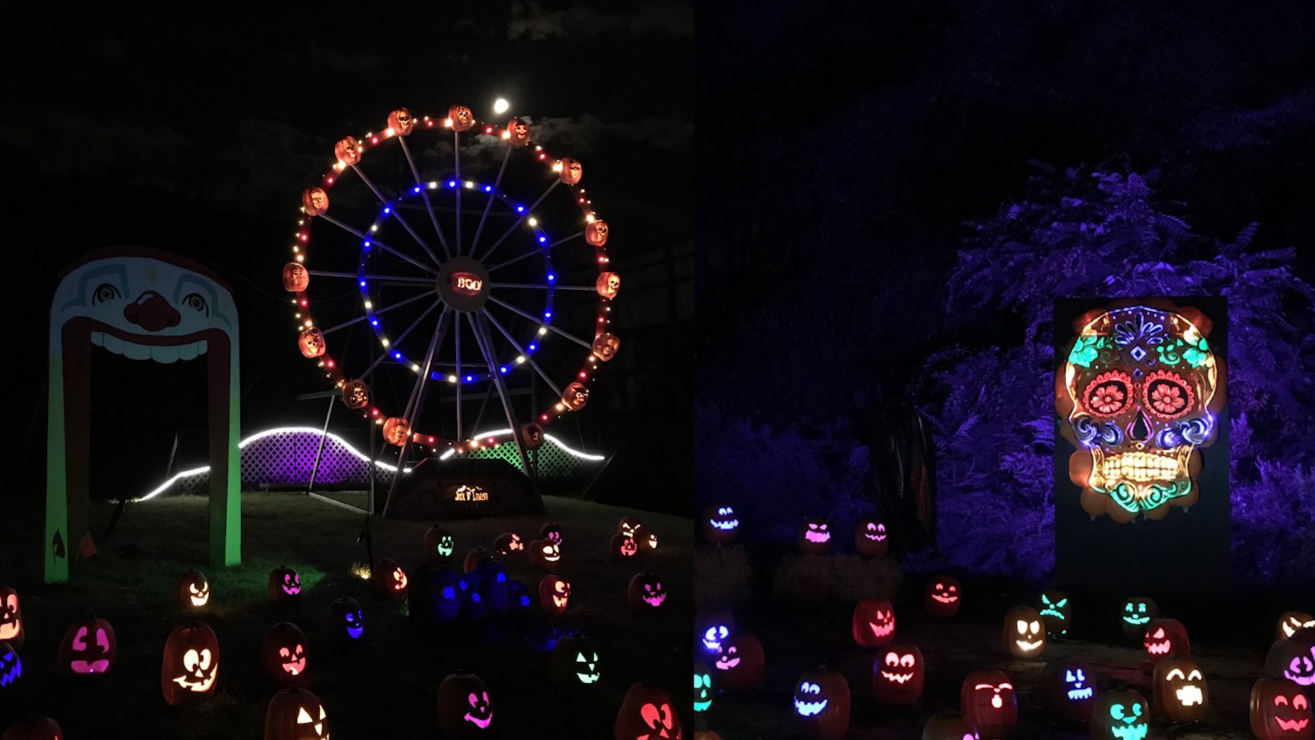 The event features thousands of hand-carved jack-o’-lanterns arranged along an illuminated walking trail. Visitors of all ages are invited to wander the path as pumpkins of every size and shape come to life in dazzling displays, creating a mix of spooky charm and breathtaking beauty. The glowing scenes stretch across the farm, giving guests plenty of opportunities to snap photos and take in the magical atmosphere.