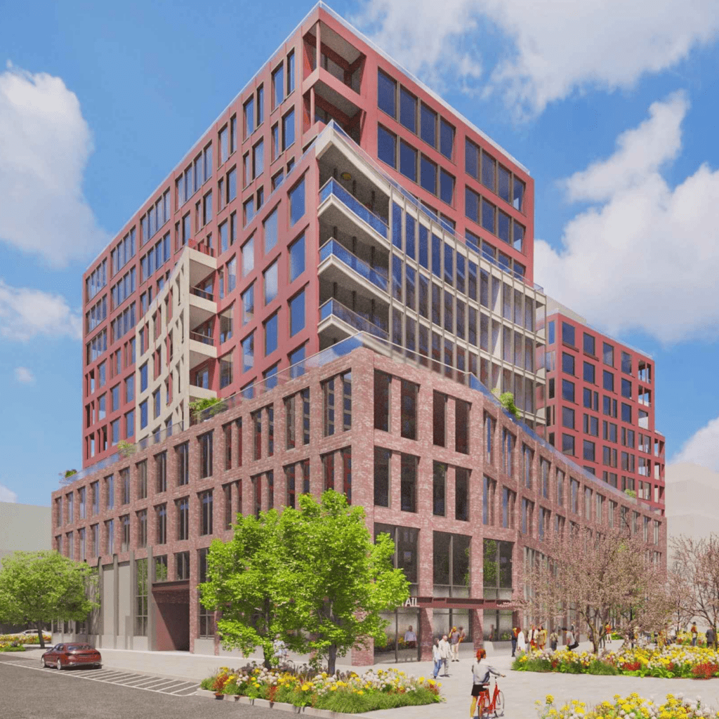 Subsequent phases will expand the development footprint along 1501-1507 Clinton Street and 1500 Willow Avenue, currently occupied by a car wash. This portion will include 188 rental units with a continued 10% affordable housing allocation, over 11,000 square feet of retail space, and public open areas totaling more than 21,700 square feet. A 6,000-square-foot promenade will connect the phases, creating a continuous public gathering space and pedestrian corridor. Another building at 1524-1530 Willow Avenue will feature 126 condominium units, retail space, and 135 parking spaces, further enhancing the pedestrian-oriented plaza.