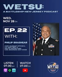 The latest episode of WETSU: A Battleship New Jersey Podcast brings listeners an extraordinary conversation with Chief Warrant Officer 5 Phillip Brashear, son of Navy legend Master Chief Carl Brashear. Carl Brashear’s trailblazing career as the first Black U.S. Navy Master Diver became the subject of the 2000 film Men of Honor, and his son Phillip continues the family tradition of service with a distinguished military journey of his own.