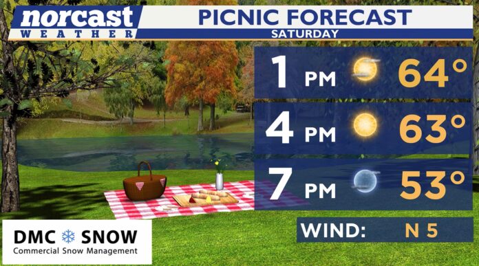 Saturday, November 8, brings a brief reprieve from precipitation. Daytime highs will reach the low to mid-60s, and skies should remain mostly dry after Friday night’s rain clears. However, breezy conditions are expected, particularly along coastal areas, with winds shifting from the west and northwest during the morning before settling out of the southeast by Sunday morning. Overnight temperatures will dip to the 40s for northern elevations and 50s along the southern coast.