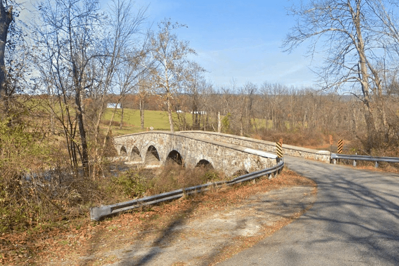 The Warrington Stone Bridge in Knowlton Township, Warren County, built around 1860, is New Jersey’s largest surviving 19th-century stone-arch roadway bridge. Its six gracefully curved arches carry Brugler Road over the Paulins Kill and remain in use today, celebrated for both functionality and historic craftsmanship.
