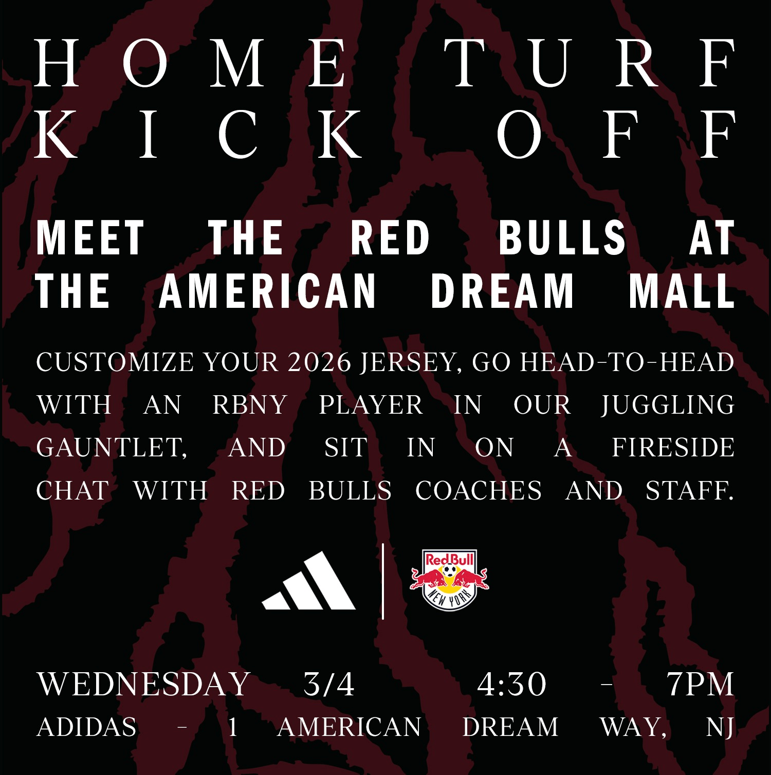 New Jersey soccer fans have a rare opportunity to get up close with one of Major League Soccer’s most recognizable clubs this week. The New York Red Bulls are set to host a full team appearance presented by adidas at American Dream in East Rutherford on Wednesday, March 4, from 4:30 PM to 7:00 PM.