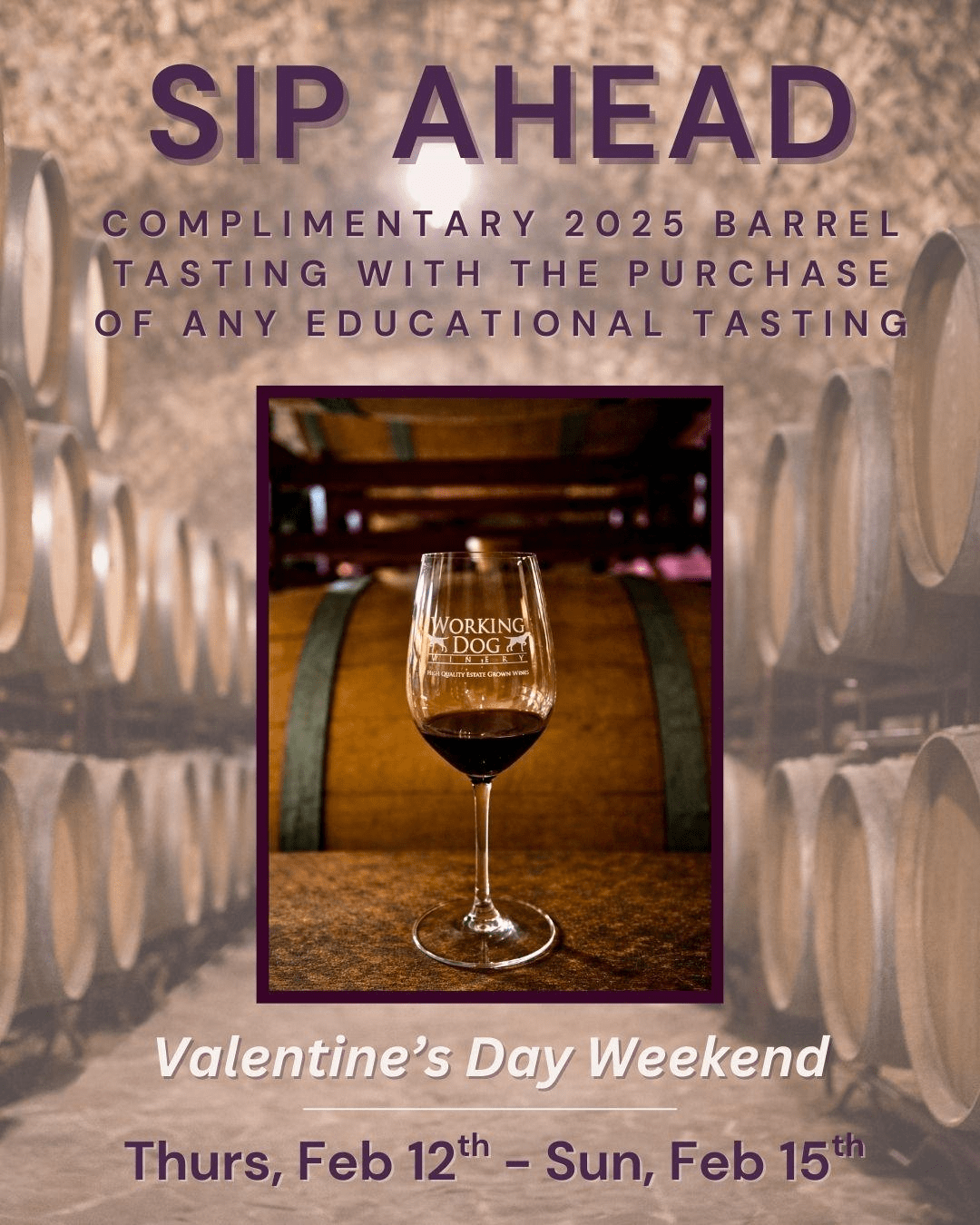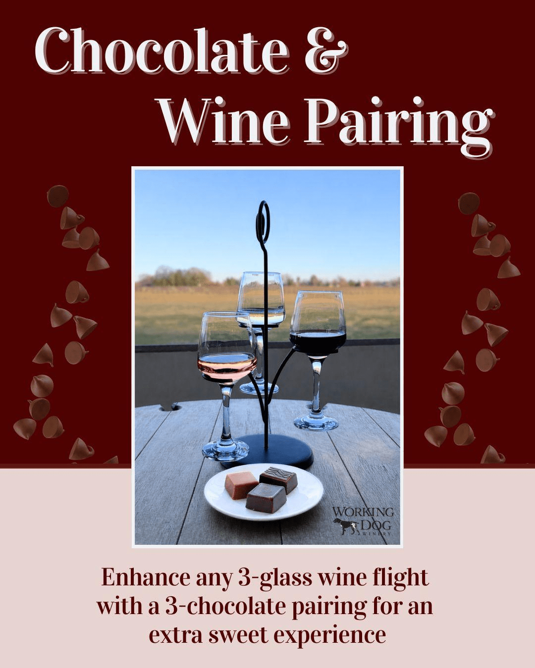 Adding a layer of indulgence to the weekend, Working Dog Winery will also offer special wine and chocolate pairing flights. For an additional $30, guests can enhance any three-glass wine flight with a curated trio of chocolate pairings designed to complement the flavor profiles of the wines being poured. The pairing experience transforms a casual tasting into a sensory exploration—highlighting how sweetness, tannin, acidity, and texture interact when wine and chocolate are thoughtfully matched.